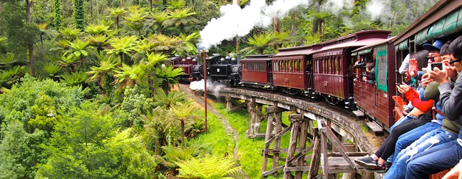 現在、パッフィングビリー蒸気機関車のご予約が取りづらくなっております。パッフィングビリー蒸気機関車を含むツアー(ダンデノン&ヤラバレーツアー【DAY1】、ダンデノン半日ツアー【DAN1】、ダンデノン&ヒールスビル鳥獣保護区ツアー【DAH1】)は、2ヶ月前までにご予約をお勧めいたします