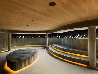 | 特別観覧席(Underground View) Underground Viewingは、特別観覧席(Penguin Plus)の下に設けられた、ペンギンを目線の高さで観察できる観覧席です。ペンギンから人の姿が見えないよう、スモークガラスが使用されています。また、天候が悪い場合でも雨風を避けて観覧できるというメリットがあります。 |